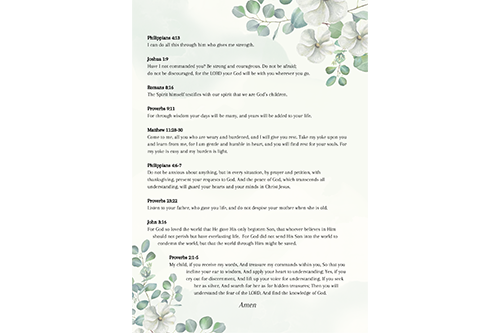 For my daughter's 16th birthday, I prayed a blessing over her. These scriptures carry blessing, wisdom and healthy advice for us all to follow in life. Download the 3 pages of scripture with elegant floral water colour designs, to print. The download is in a print quality PDF format.